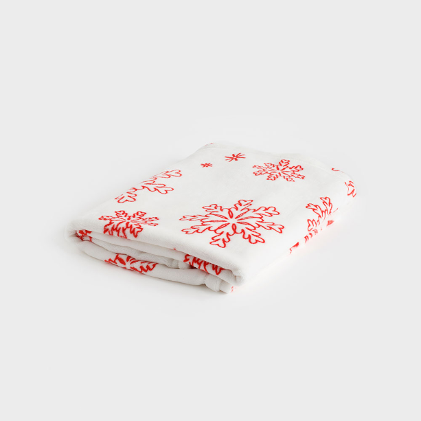Miękki, puchaty i bosko ciepły – koc w śnieżynki zapewni ci przyjemne ciepełko i relaks, gdy za oknem pruszy śnieg. Wykonaliśmy go ze wysokiej jakości polarowej tkaniny w białym kolorze i ozdobiliśmy śnieżynkami. Sprawdzi się znakomicie jako ozdobna narzuta na kanapę.
