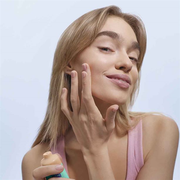 Dzięki kryjącej formule z ekstraktem z zielonej herbaty i kwasem salicylowym podkład maskuje wszelkie niedoskonałości cery.
