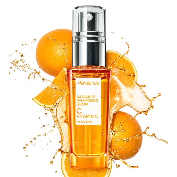 Skoncentrowane rozświetlające serum do twarzy Anew wyraźnie wygładza, rozpromienia i udoskonala strukturę skóry dzięki mocy aktywnej, 10% witaminy C.